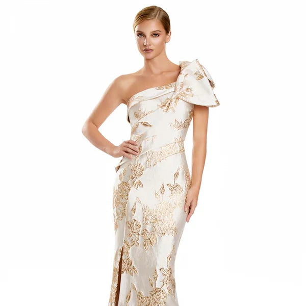 Four gold special occasion gowns inspired by Mariah Carey's caped gold sequin dress for her 2023 holiday tour.