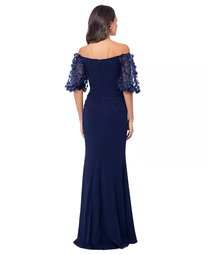Xscape Off-The-Shoulder Floral Sleeve Gown
